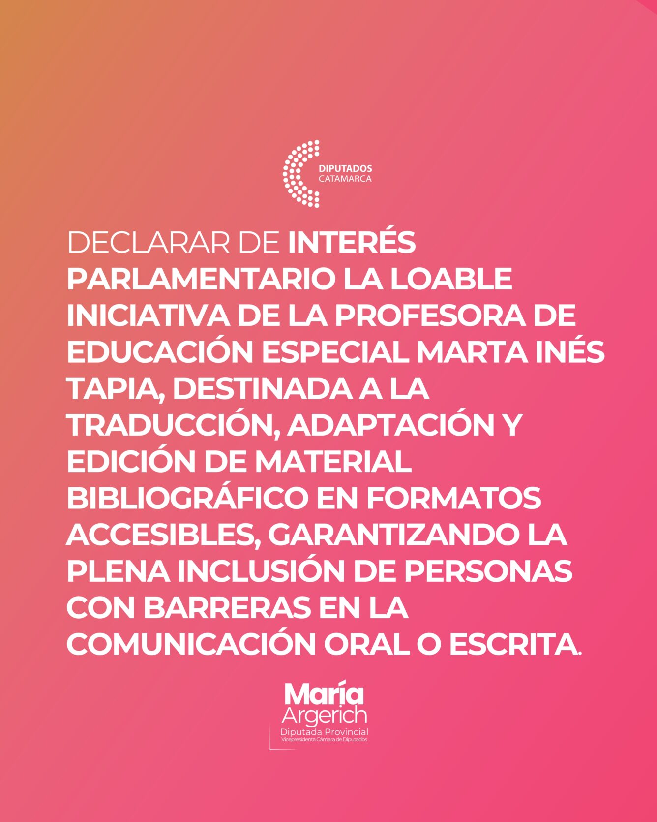 EN LA DÉCIMO SEXTA SESIÓN ORDINARIA DEL PERÍODO 136º DEL AÑO 2025 JUNTO A MIS PARES PRESENTÉ EL SIGUIENTE PROYECTO DE DECLARACIÓN: